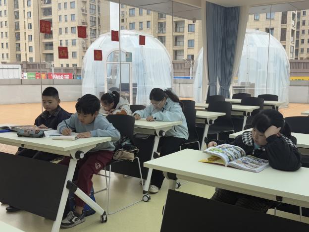 走进社区活动室,映入眼帘的是孩子们伏案学习的身影。这里没有家中的电视与玩具的干扰,只有笔尖划过纸张的沙沙声和翻动书页的清脆声响。社区特意开辟了“静音自习区”,并配备了志愿者进行看护和作业辅导,为孩子们营造了一个安静、高效的学习环境。