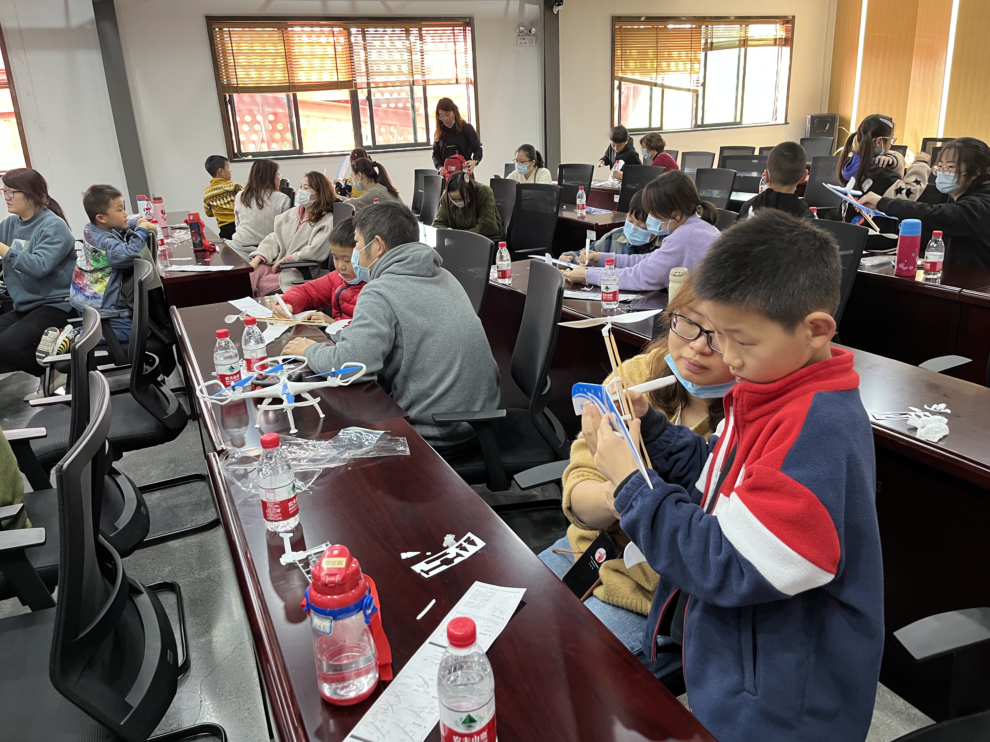 老师首先通过两个简短的视频带大家了解了航模的相关知识,然后开始制作模型。小孩为主,大人为辅,经过半小时的制作,一架架造型别致、神气活现的“飞机”呈现在了大家眼前。