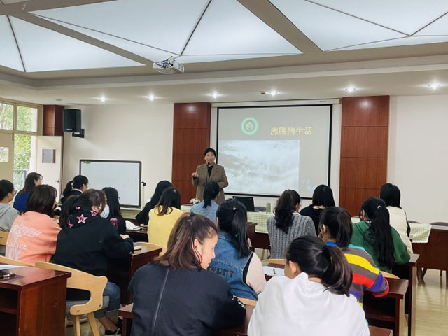 为引导教师学会自我调节、释放压力,培养阳光心态, 近日,南湖区大桥镇实验幼儿园工会特邀浙江省社会工作与志愿者协会常务理事、国家职业二级心理咨询师刚俐老师开展以“沸腾的生活”为主题的平衡工作与家庭关系讲座,两个园区的教师共同聆听讲座。