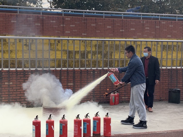 最后,学校安全科负责老师向全体学生及教职工讲解灭火器的使用方法及注意事项,并请部分学生及教职员工进行实际操作。