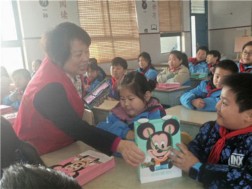 12月31日,浙江省卫星石化股份有限公司党员志愿者团队在杨玉英书记的带领下来到大桥镇新居民学校,给孩子们送上元旦的慰问。