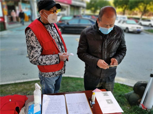 杨师傅在其他社区做保安,经常通宵值班后不顾休息,就来到小区大门为进出人员测量体温。只要有时间,他就和社区的工作人员一起为居家隔离户送必需品,并对他们嘘寒问暖,稳定居家焦虑心情。