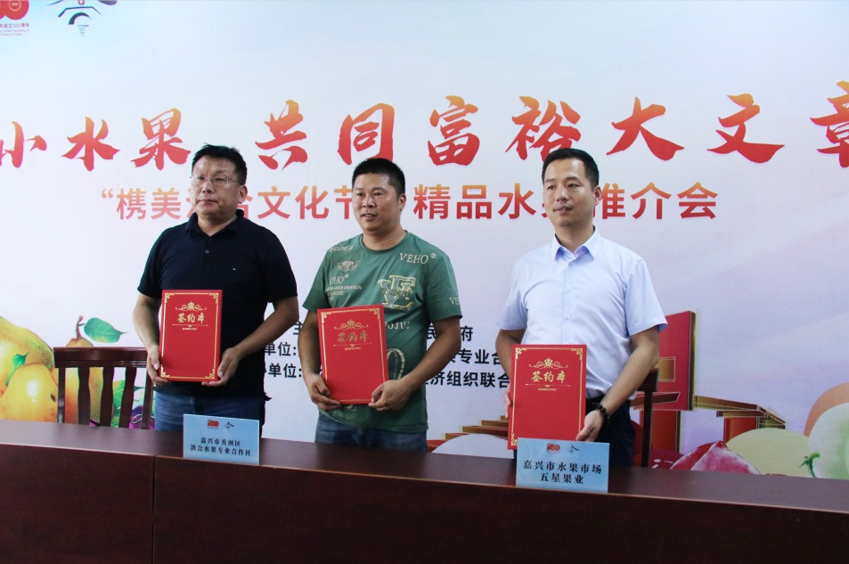 “乡村振兴是激荡在农村大地上最为动人的梦想,也是回旋在农民心中最为深切的期盼。而实施乡村振兴战略离不开全社会各方面的支持。”洪合镇相关负责人说,因此,在今年的精品水果推介会上,洪合镇积极组织高校、水果销售企业与本地水果合作社进行了对接,帮助本地果农拓宽销路,助力特色名优水果产业品牌化发展。其中,洪合镇党委与上海交通大学新农村发展研究院签订了乡村振兴战略合作协议;洪合镇人民政府与嘉兴市技师学院签订了产业校地推广协议;洪合镇农民合作经济组织联合会、浙农(杭州)电子商务有限公司、嘉兴市秀洲区洪合水果专业合作社签订了强企共建助农协议;嘉兴市水果市场五星果业、君龙果业与洪合水果专业合作社签订了战略合作协议。