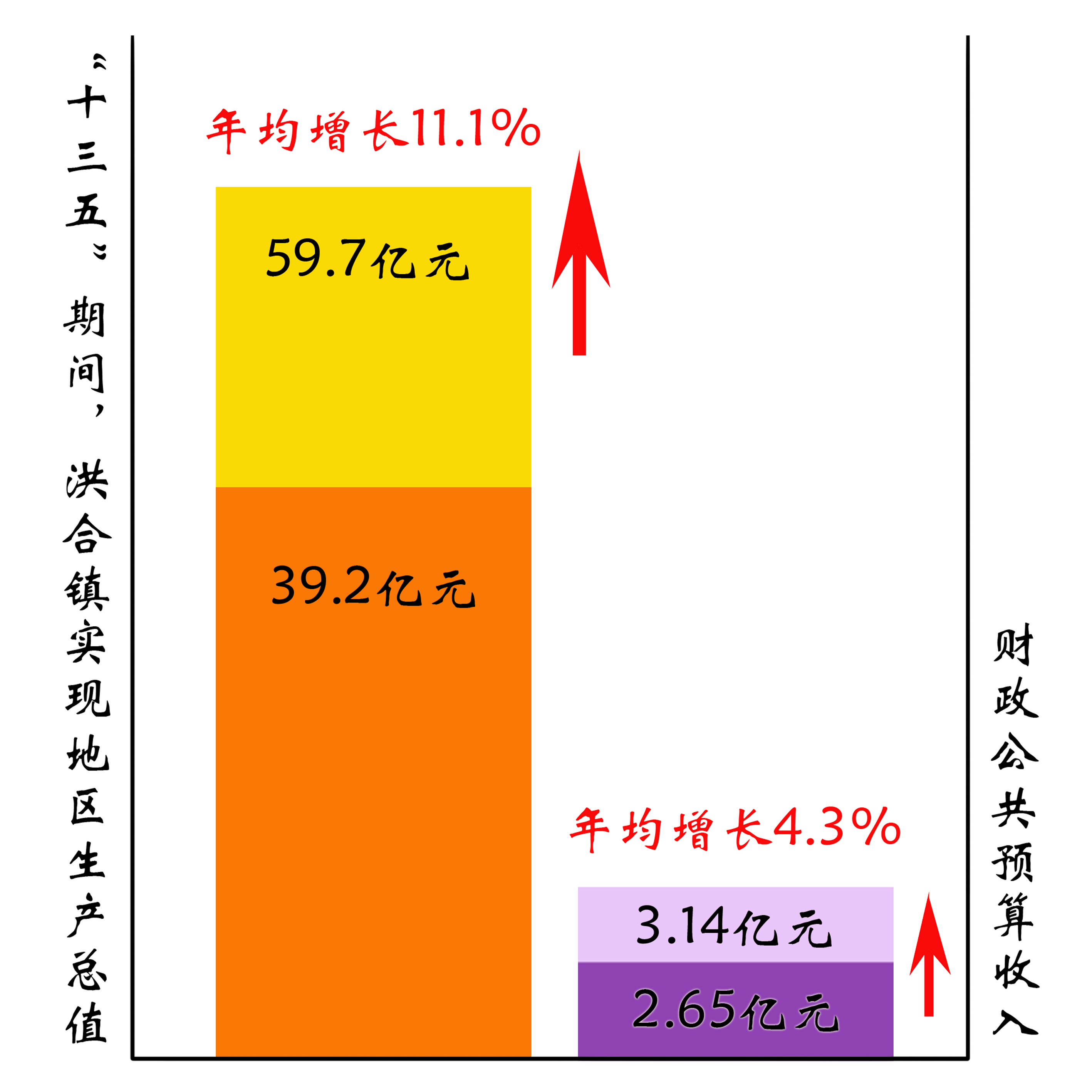 一组数据见证了洪合镇高质量发展的成效,“十三五”期间,洪合镇实现地区生产总值从39.2亿元增长到59.7亿元,年均增长11.1%,财政公共预算收入从2.65亿元增长到3.14亿元,年均增长4.3%。