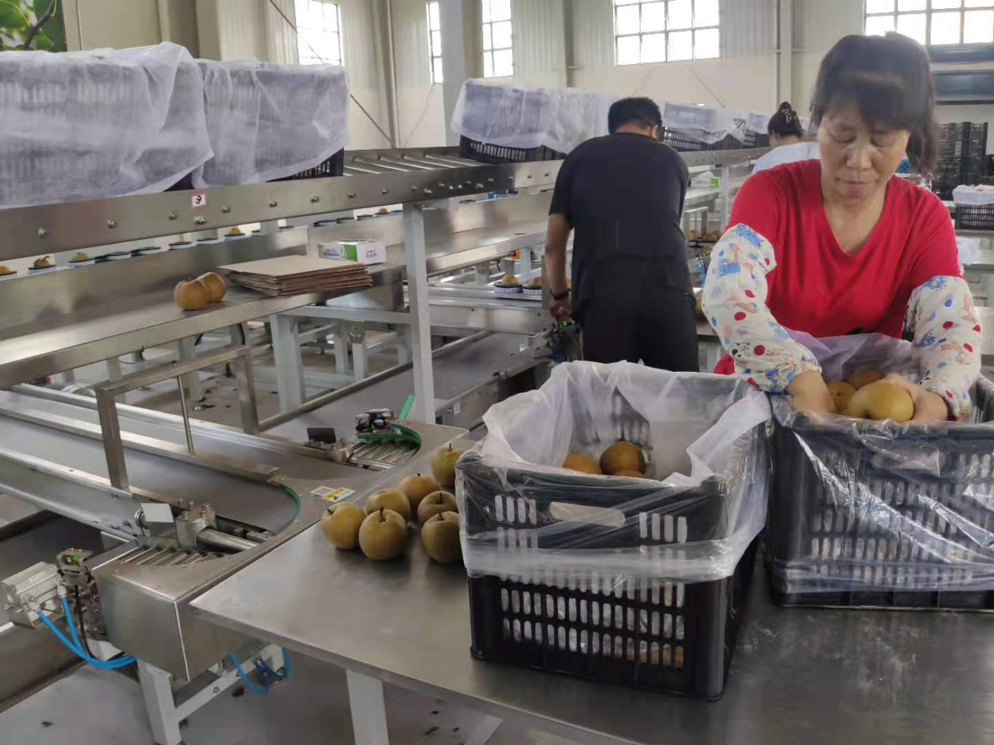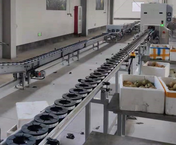 “这条智能选果机流水线长度为27米,它会根据每个蜜梨的内部糖度、是否霉心,以及外部颜色、瑕疵等,对每个蜜梨进行称重、甜度、外观的分级,一秒钟可以选三个果子,效率非常高。”王龙说。