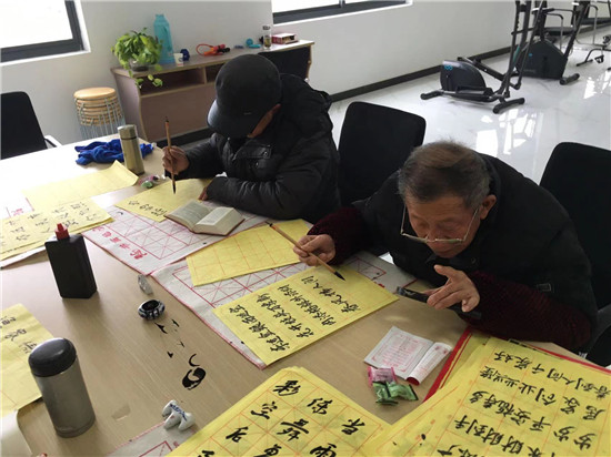活动中,大家都非常专注,选取自己喜欢的诗词、文章作为内容,一笔一划地在纸上书写着,享受着书法带来的乐趣。没一会,一张张书法纸上就呈现了笔迹工整的字,同时活动室也充满着墨香味。最后他们纷纷拿出自己的作品进行展示交流,现场其乐融融。