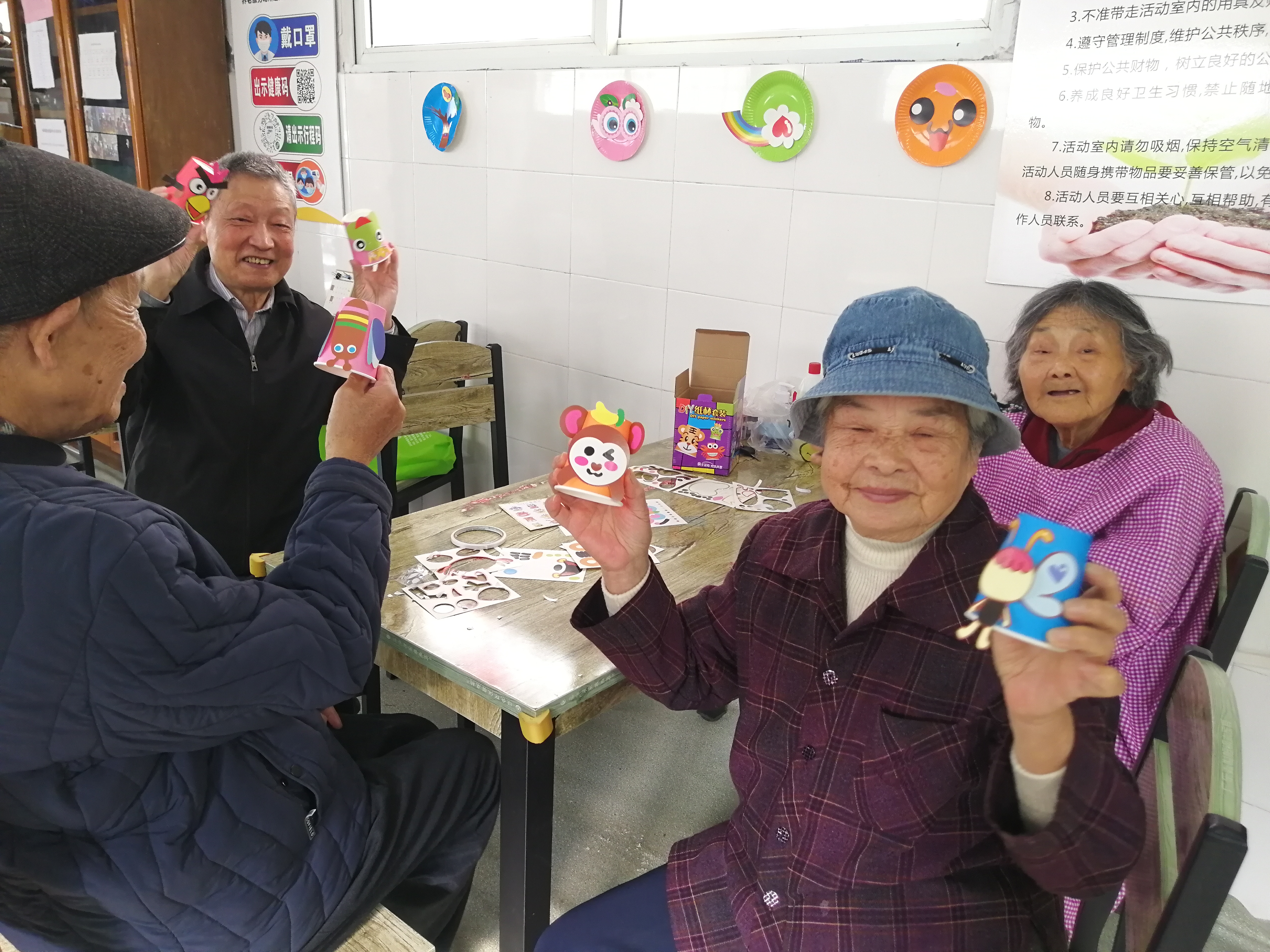 随后,开展了手工卡通纸杯贴画活动。在居家养老服务中心工作人员的指导下,大家挑选自己喜欢的卡通画,按照社工传授的步骤认真制作,一会儿工夫,一个个栩栩如生的纸杯画呈现在大家面前。