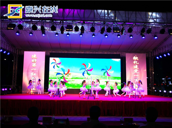 嘉兴在线6月30日讯 今晚,在迎来党的97岁生日之际,南湖街道第十二届“红船之歌”群众文化节在辖区老佛爷购物中心广场盛大开幕,现场灯光璀璨、掌声阵阵,先进的事迹、感人的故事,嘹亮的歌声激励着街道党工委、办事处和辖区群众一起迈向新征程。