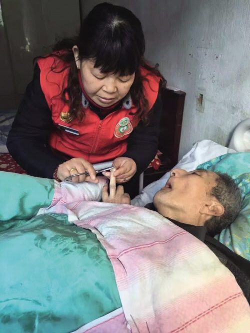家住南湖街道石榴坊的薛师傅,是一名肢体一级重度残疾人,因为中风,长期瘫痪在床,同时也是一名失独老人。失去子女的痛苦让薛师傅难以忘怀,尤其是老人平时生活就不便,缺少了子女的照顾后,每日就更加郁郁寡欢。为此,王万玲就经常抽空去陪薛师傅,与薛师傅聊天,当做子女一样地去关心薛师傅,照顾薛师傅。经过几年的相处,薛师傅说,王万玲虽然不是他的亲人,但是就跟他的亲人一样。