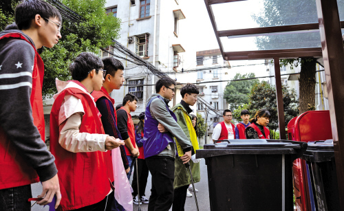 昨天下午,南湖区南湖街道农翔社区,一批嘉兴学院的大学生志愿者参加由翔益志愿者服务工作室组织的垃圾分类志愿活动。大学生们向社区志愿者学习垃圾分类知识,清理小区内绿化带等卫生死角,进行垃圾分类处理。