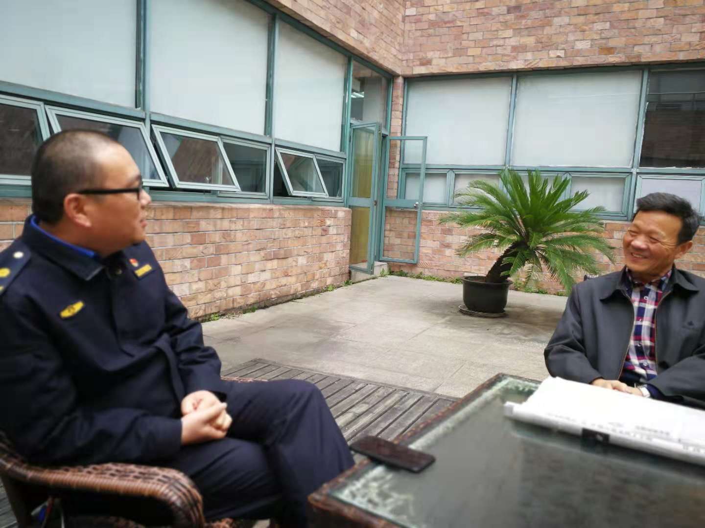嘉兴在线讯 近日,南湖街道行政执法中队队长高翔来到拟聘任为“民间路长”的计家康家中,与其探讨交流海盐塘路管理相关事宜。