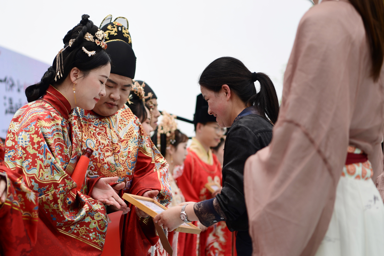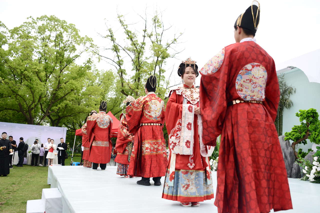 5月20日,“情定南湖 幸甚相得”南湖区婚姻登记户外颁证基地启用暨520集体颁证仪式在嘉兴市区南湖天地举行。12对新人在此举行了一场简约而不简单的中式集体婚礼,倡导简办婚礼不减爱的婚俗新风。新人们还积极参与了活动主办方组织的公益项目捐助活动,传递爱意。