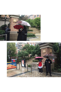 为了防控社区传播,社区志愿者和物业一起对进出小区的车辆和人员进行体温测量并详细询问,为小区的安全做好服务。