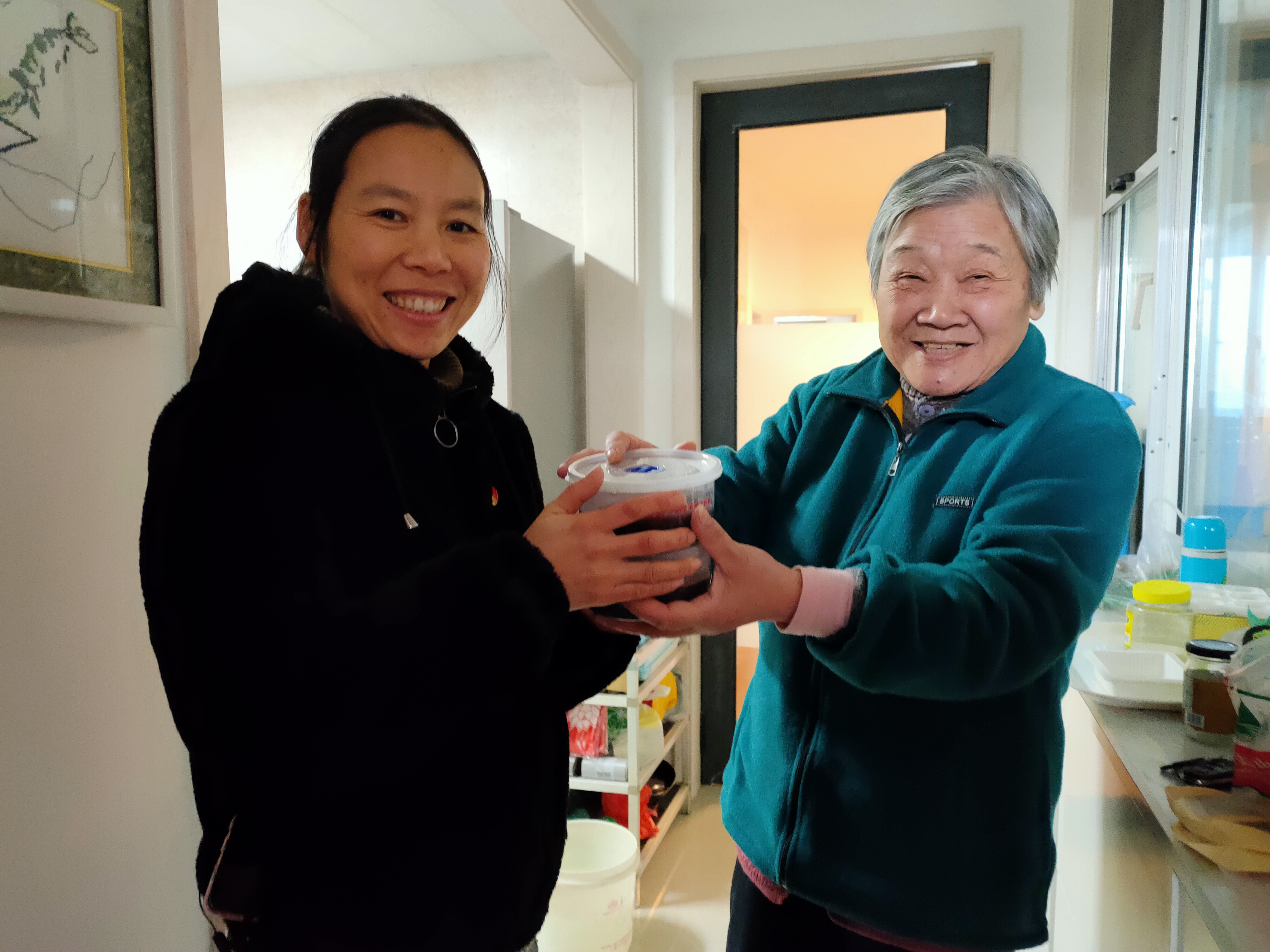 活动中,工作人员还上门为行动不便的空巢老人送去腊八粥,给他们捎去一份温暖和问候,让他们也能感受到节日的快乐, 不再感觉孤单。