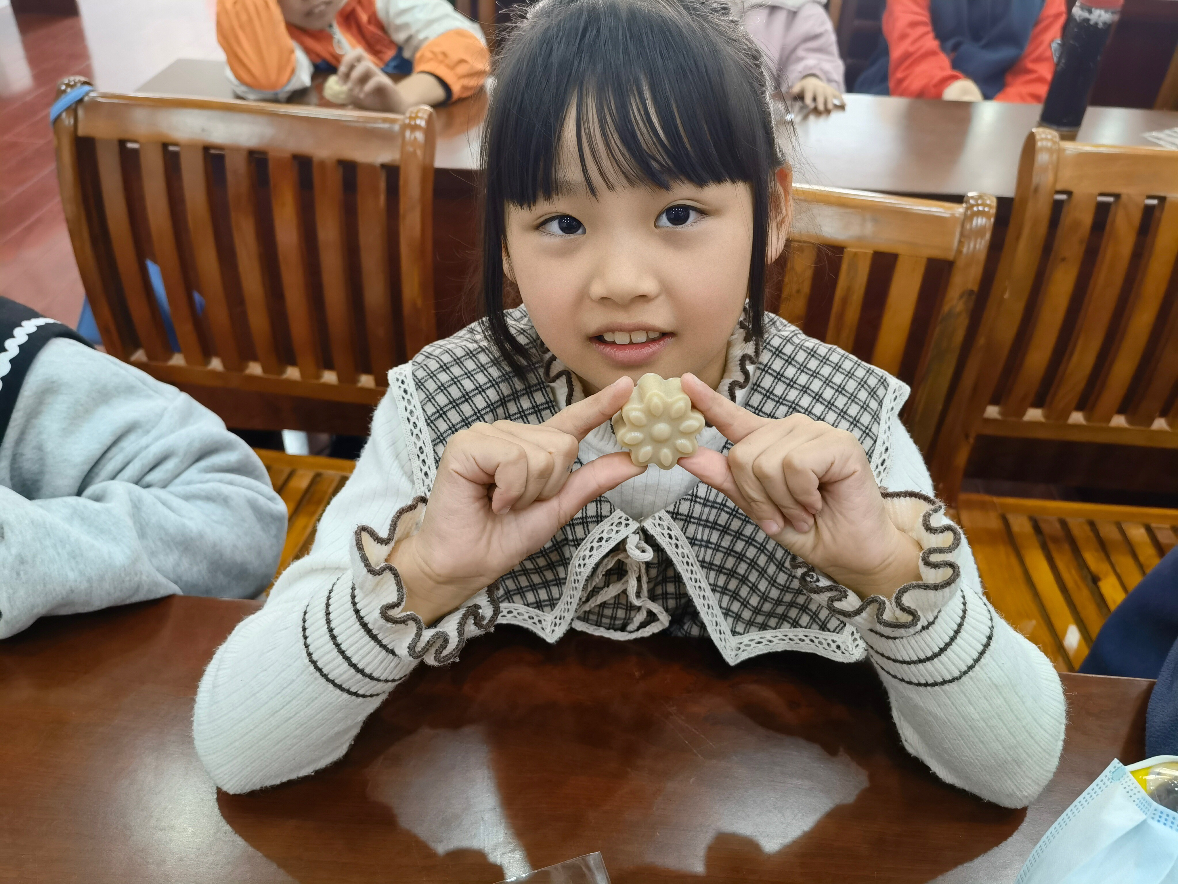 工作人员简单介绍了酵素肥皂的制作方法,孩子们个个都露出新奇的和期待的表情,并且都要跃跃欲试,参与制作,先将皂基加热至融化,然后加入酵素原液,不断搅拌至冷却,再将其倒入模具里等待其凝固,最后取出装袋,到这里整个制作过程就结束了。当然最吸引人的就是成果展示环节了,大家看到一个个精美图案的手工皂脱模成功,都非常开心!