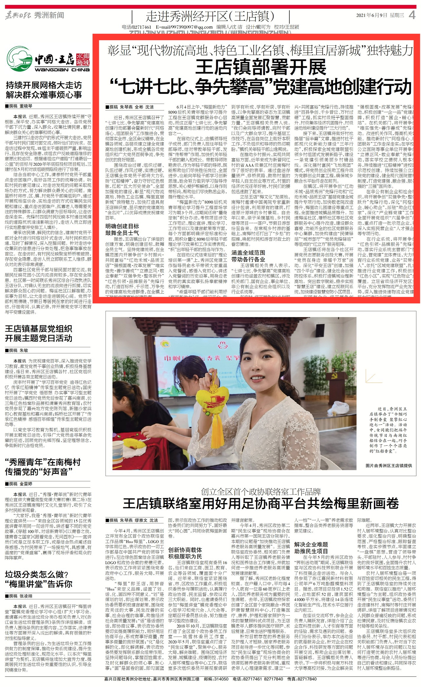 据悉,王店镇出台了详细的创建方案,明确创建目标,鼓舞全员士气。坚持党建统领,在全镇范围内开展争创“乡村振兴·共同富裕”“红动禾城·品质王店”“强根固魂·改革发展”“唯实惟先·善作善成”“立德正风·敬业奉献”“双强争先·整体跃升”“红色引领·品牌服务”先锋行动,打造百标杆、千示范、万争先的党建高地先进群像,在全镇上下掀起党建高地创建热潮。