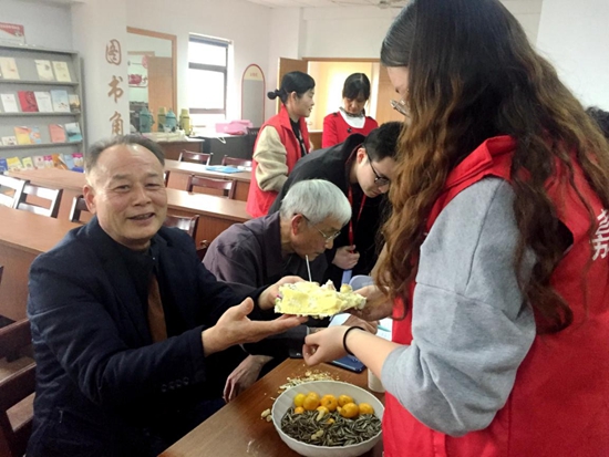 随后,北京路社区工作人员和嘉科智慧养老的社工们为退役军人们送上慰问蛋糕,大家一边品尝美味蛋糕,一边畅所欲言。70多岁的杨自信退役前是为铁道兵,他与大家分享了自己军旅生涯中修建“成昆铁路”时的艰辛岁月和珍贵的回忆。两年前刚退伍回嘉的黄学成讲述了作为当代青年在新时代中的军旅生涯故事,以及入伍经历为现在的生活所带来的收获。退役军人们畅言的军旅生活令人向往,更令人敬仰。