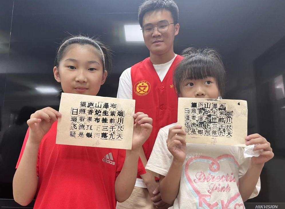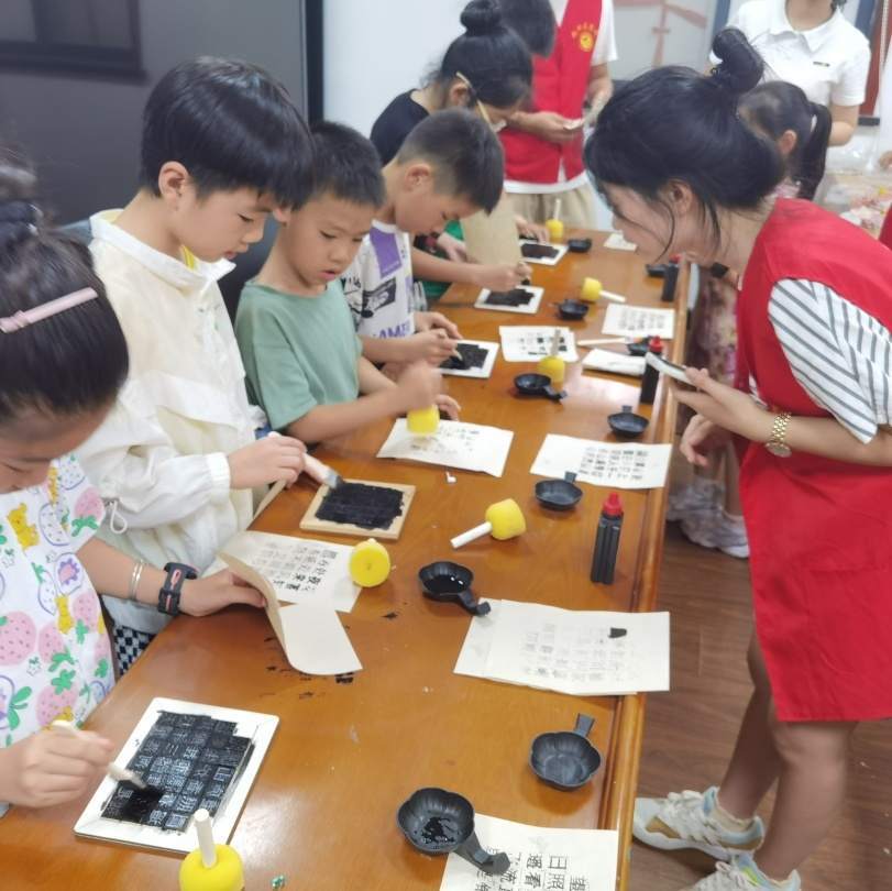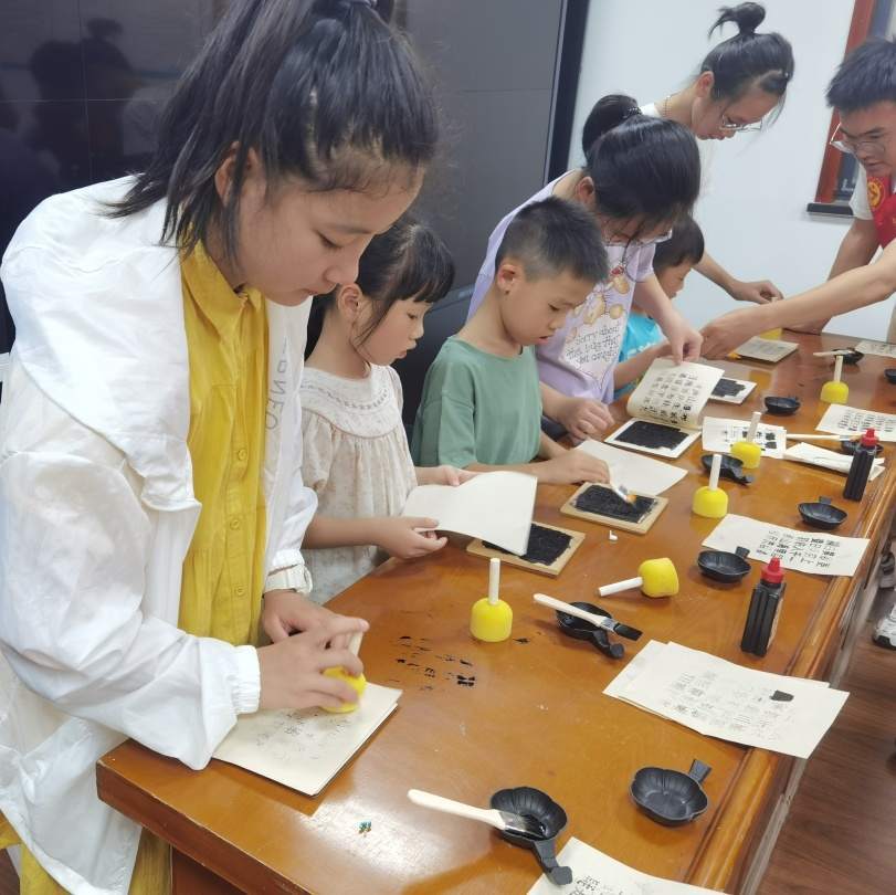 什么是活字印刷?活字印刷的由来?大学生志愿者们将活字印刷的发展历程等相关知识一一向小朋友们进行科普。小朋友们聆听了精彩解读,了解制作方法,都踊跃的举手上台,尝试拓制技艺。
