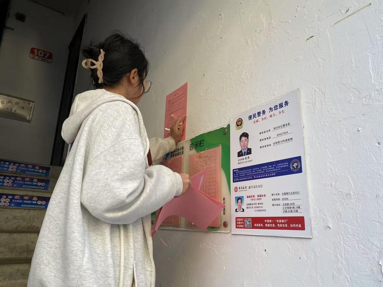 线下,通过张贴楼道公告,进一步扩大政策的知晓度。