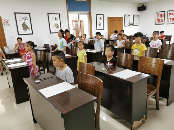 与此同时,在余新社区文化讲堂内,“五老”丁根生正在为即将要进入校园进行文化学习的10位未成年人开展一场充满书香气息的传统礼仪活动——“开蒙礼”,20多位家长和青少年围坐在讲堂四周观礼。