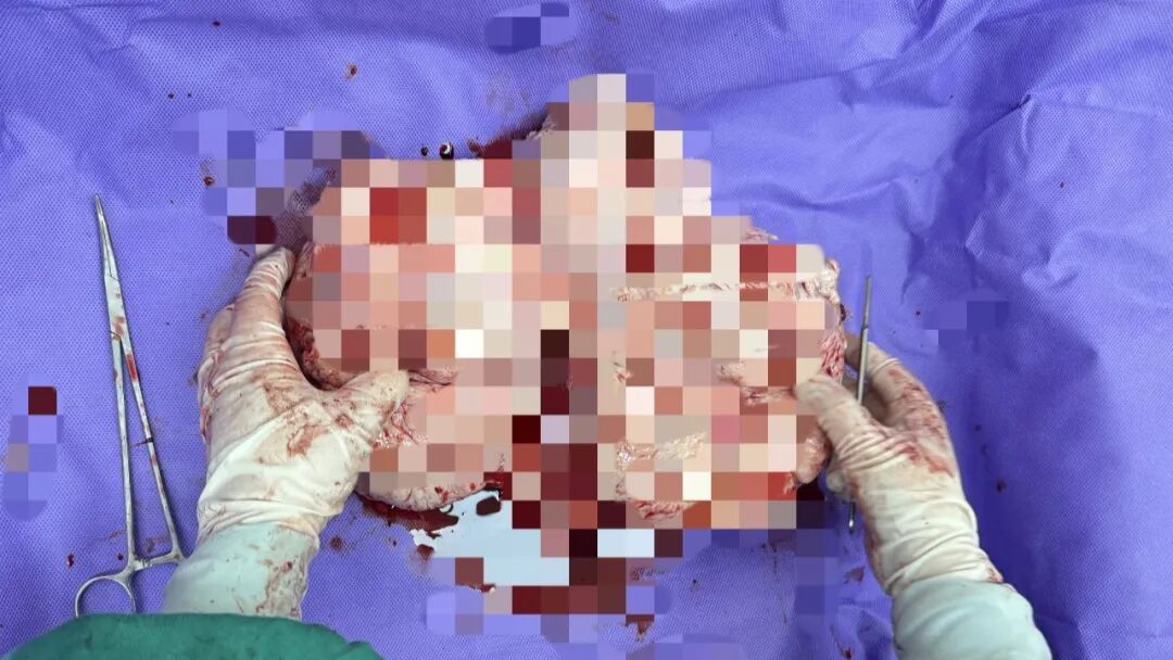 针对李女士子宫体积较大的情况,妇科团队进行了综合评估,并决定为她实施经腹子宫全切手术。术中,医生发现李女士的子宫与盆壁之间已经没有了明显的间隙,输尿管甚至沿着子宫侧壁行走,这无疑大大增加了手术的难度。凭借精湛的技术和丰富的经验,妇科团队精准操作、仔细分离组织,最终成功地将如孕数月、重达数10斤的子宫完整切除。