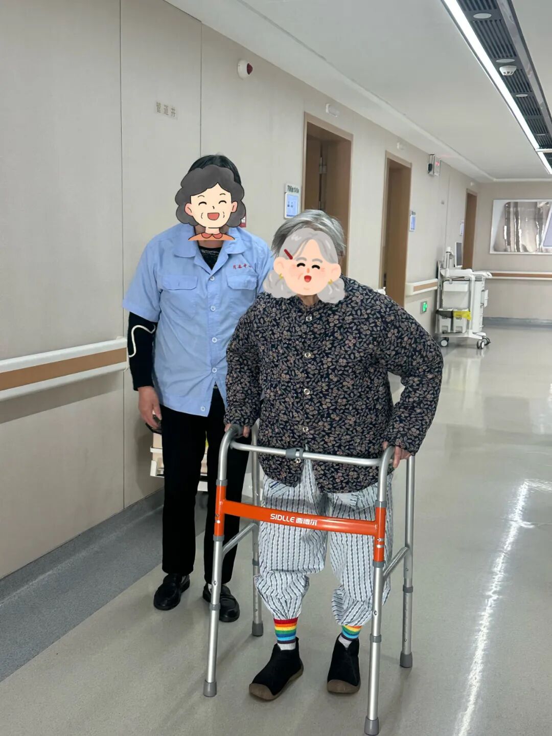 “腰不疼了!”这是李奶奶苏醒后最直接的感受。术后康复阶段,医护团队并没有让老人“静养”,而是开启了加速康复模式:术后第一天,指导李奶奶在床上做踝泵运动、直腿抬高,预防血栓;术后第二天,在医护人员的严密保护下,李奶奶扶着助行器站了起来,并迈出了手术后的第一步,完成了短距离行走!看着老人重新站立,家属激动得热泪盈眶:“真没想到恢复得这么快,太感谢医生了!”