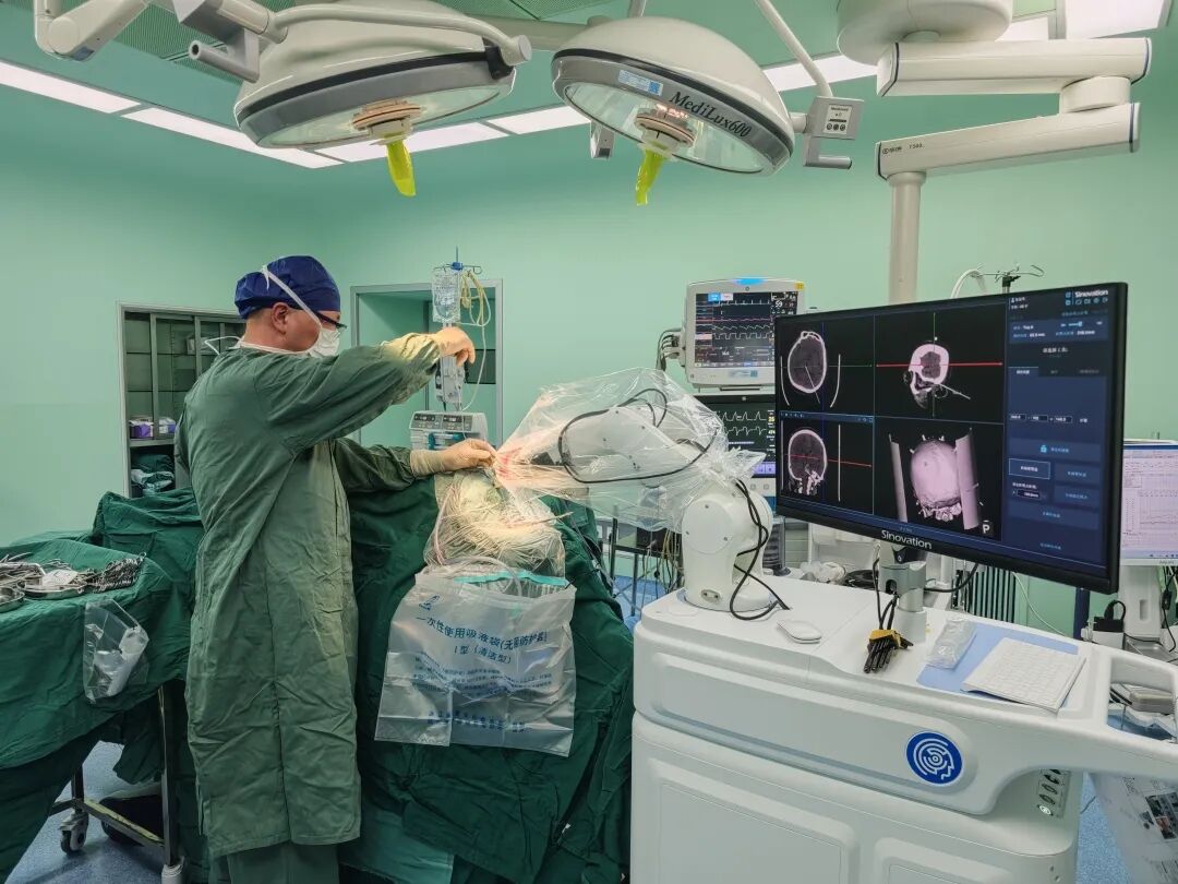 术前,医生把老张的影像数据输入系统,规划出一条最安全的穿刺路径——避开重要的神经核团和传导束,相当于在密密麻麻的雷区里找到一条安全通道。术中,机械臂在光学导航的引导下,稳稳地把引流管送到了血肿靶点,误差不到一根头发丝的直径。没有大开颅,没有惊险的“盲穿”,整个过程安静而精准。暗红色的血肿液被缓缓引出,老张的生命体征逐渐稳定下来。