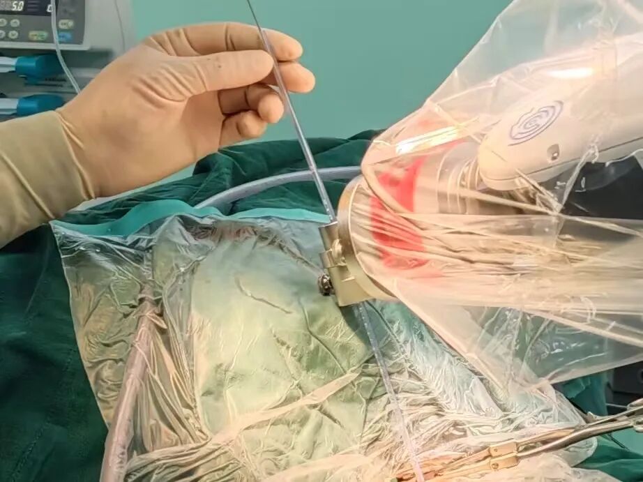 但这次,我院神经外科团队经过详细评估后,决定主动出击。借助神经外科手术机器人,为老张实施了精准的血肿穿刺引流手术。