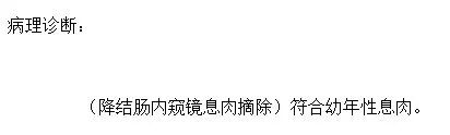 考虑到息肉体积大、蒂部粗壮,内部极可能存在粗大的滋养血管,直接切除极易引发术中、术后出血,徐思楠医生当机立断,在和小金妈妈充分沟通、取得书面知情同意后,当场为小金制定了缜密的手术方案,在手术过程中,徐医生先用数枚钛夹精准夹闭息肉的粗蒂根部,彻底阻断息肉的血液供应,再用圈套器完整套住息肉头部,通过规范的电凝电切操作将息肉完整切除,最后再用钛夹严密封闭手术创面,全程几乎无明显出血,操作顺利完成。术后,小金转入住院部,接受了规范的禁食、静脉补液、营养支持等治疗,未出现出血、穿孔等并发症,很快恢复了正常饮食,顺利康复出院。术后病理结果最终揭晓,这枚息肉为幼年性息肉,属于良性病变,后续只需定期复查肠镜即可。