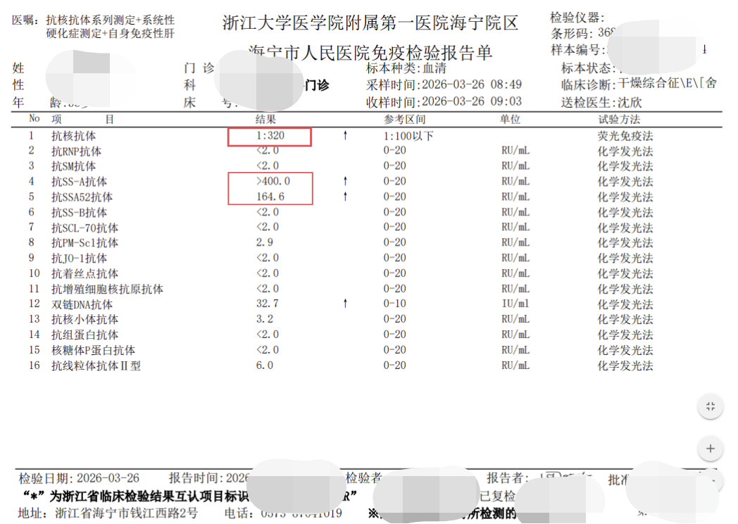 直到王阿姨在我院眼科就诊后,医生建议她到风湿免疫科会诊。沈欣副主任医师详细询问了她的病史后,提出了一个建议:“您的眼干症状可能不是单纯的眼科疾病,建议做一个全面的自身抗体检测。”王阿姨有些不解:眼睛的问题,为什么要抽血?