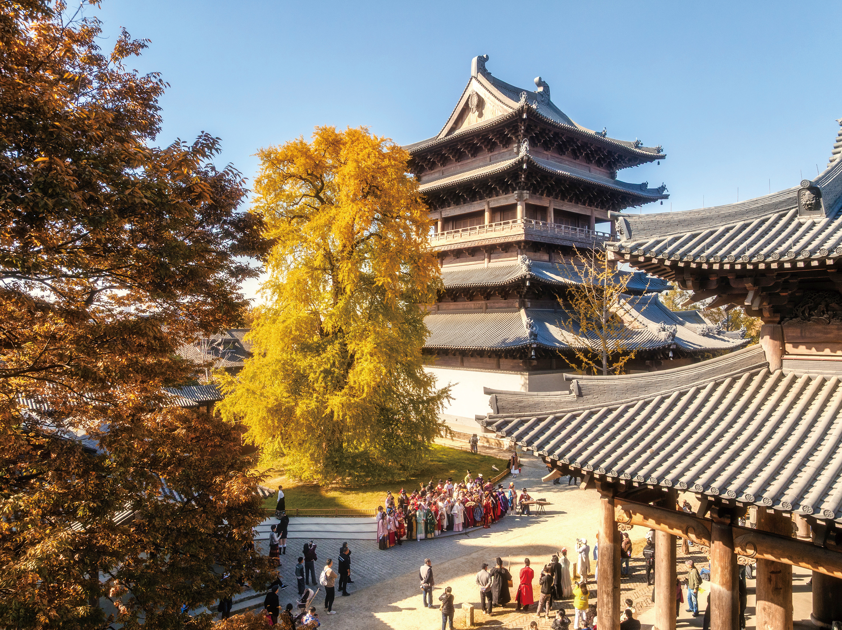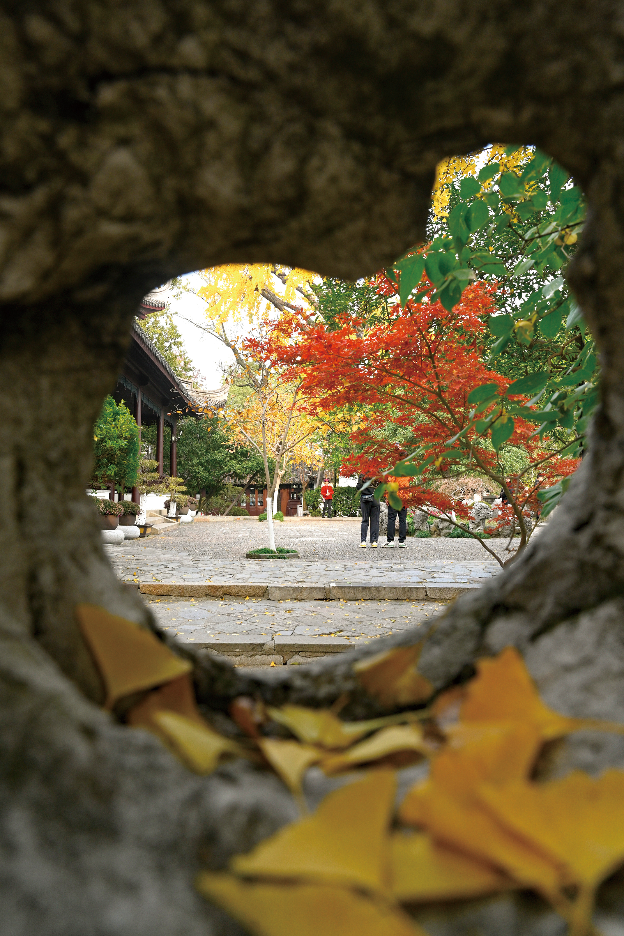 梅花洲景区的银杏则多了几分禅意;