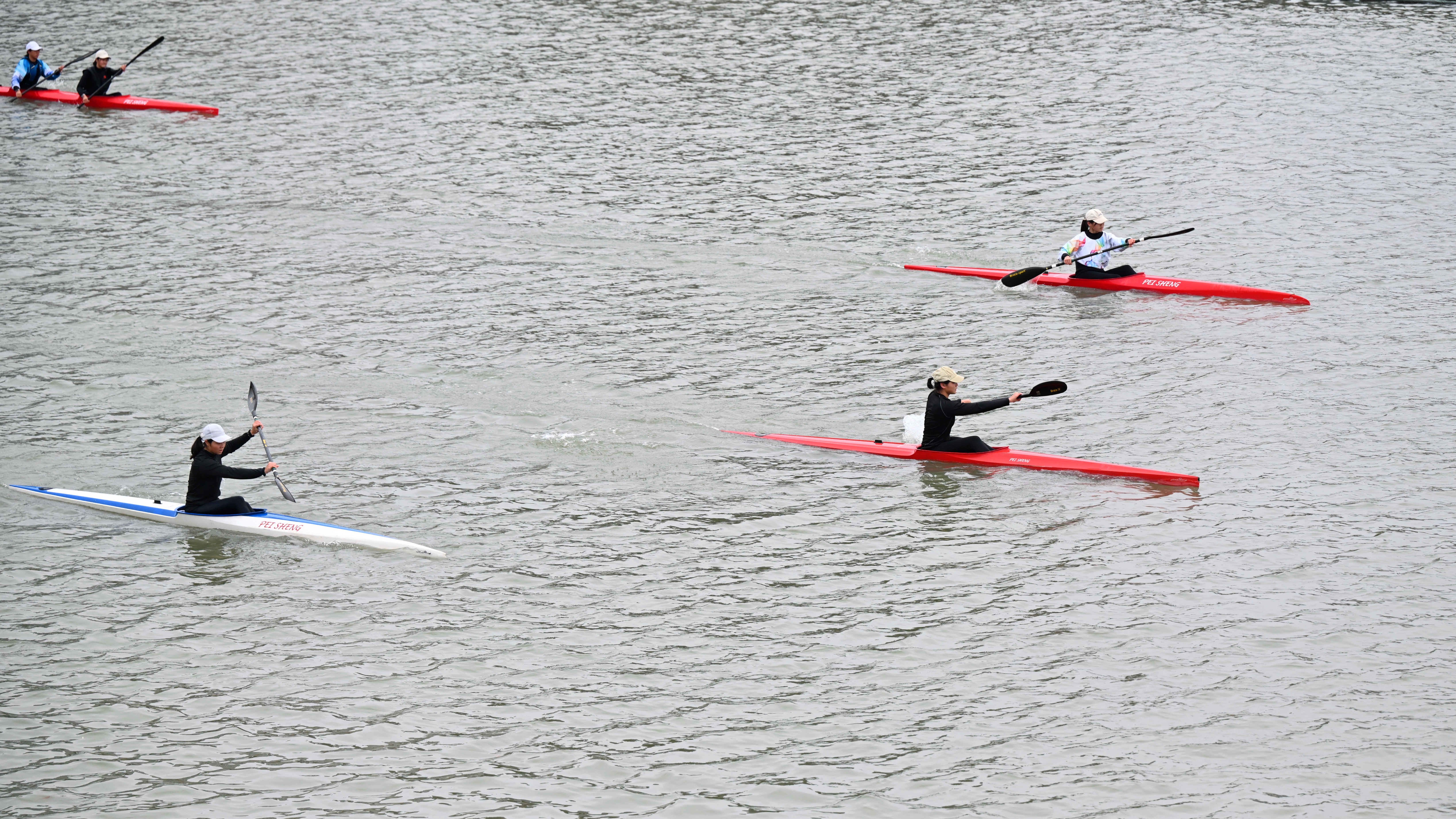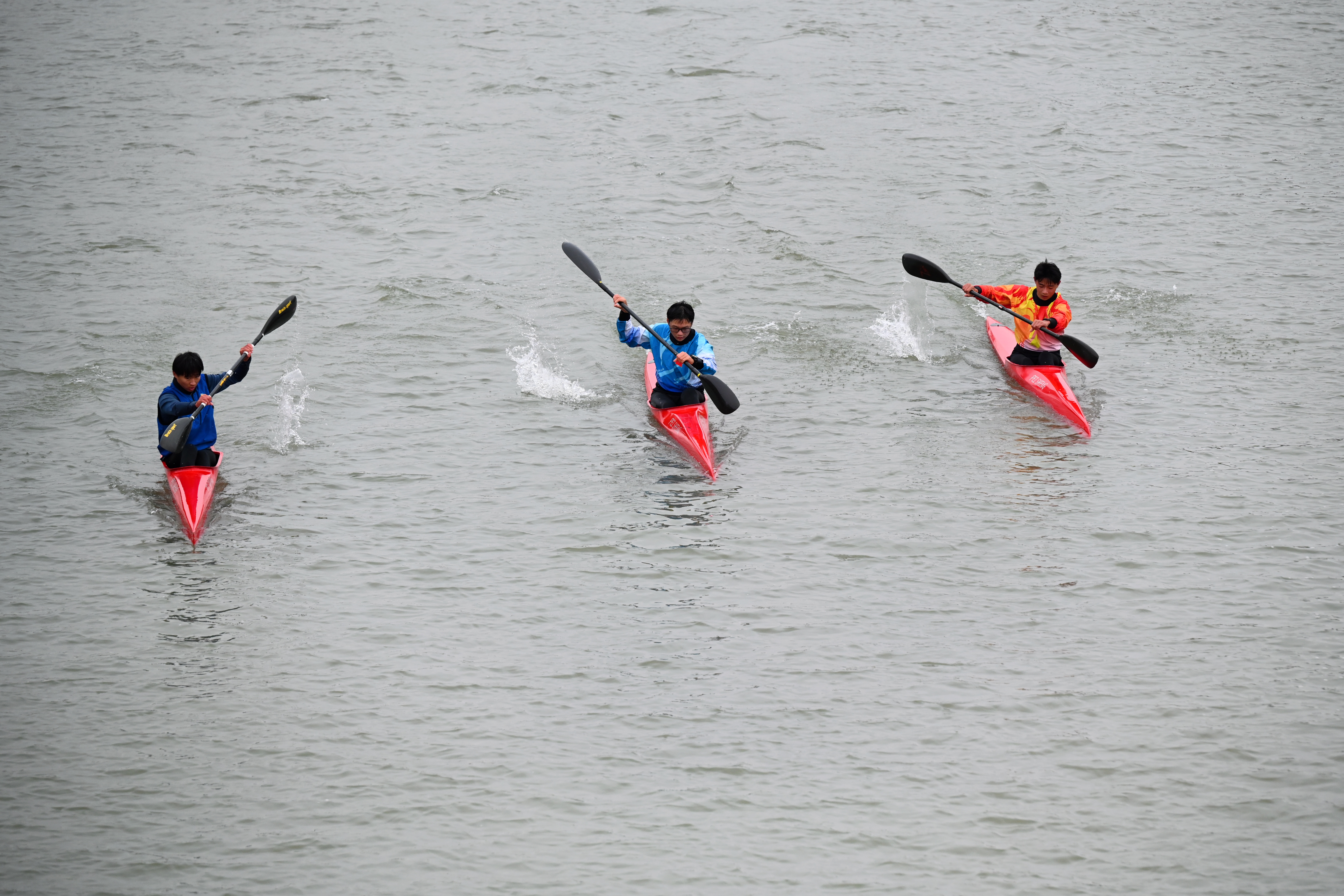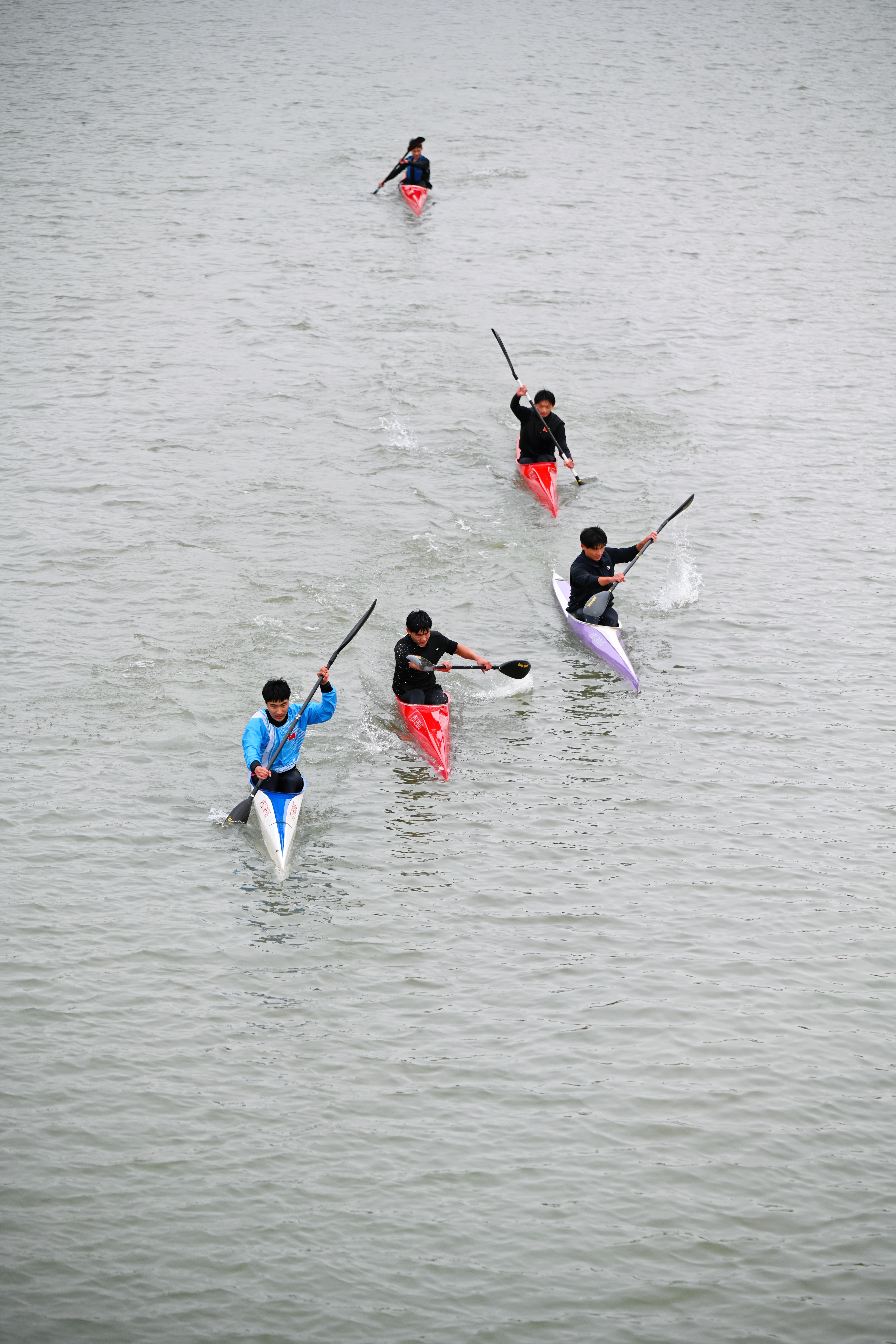 今天(12月22日)下午,嘉兴市区杭州塘,来自嘉兴市少体校的皮划艇小将们在河道里练习桨板和划艇,趁着冬日的好天气加紧训练。