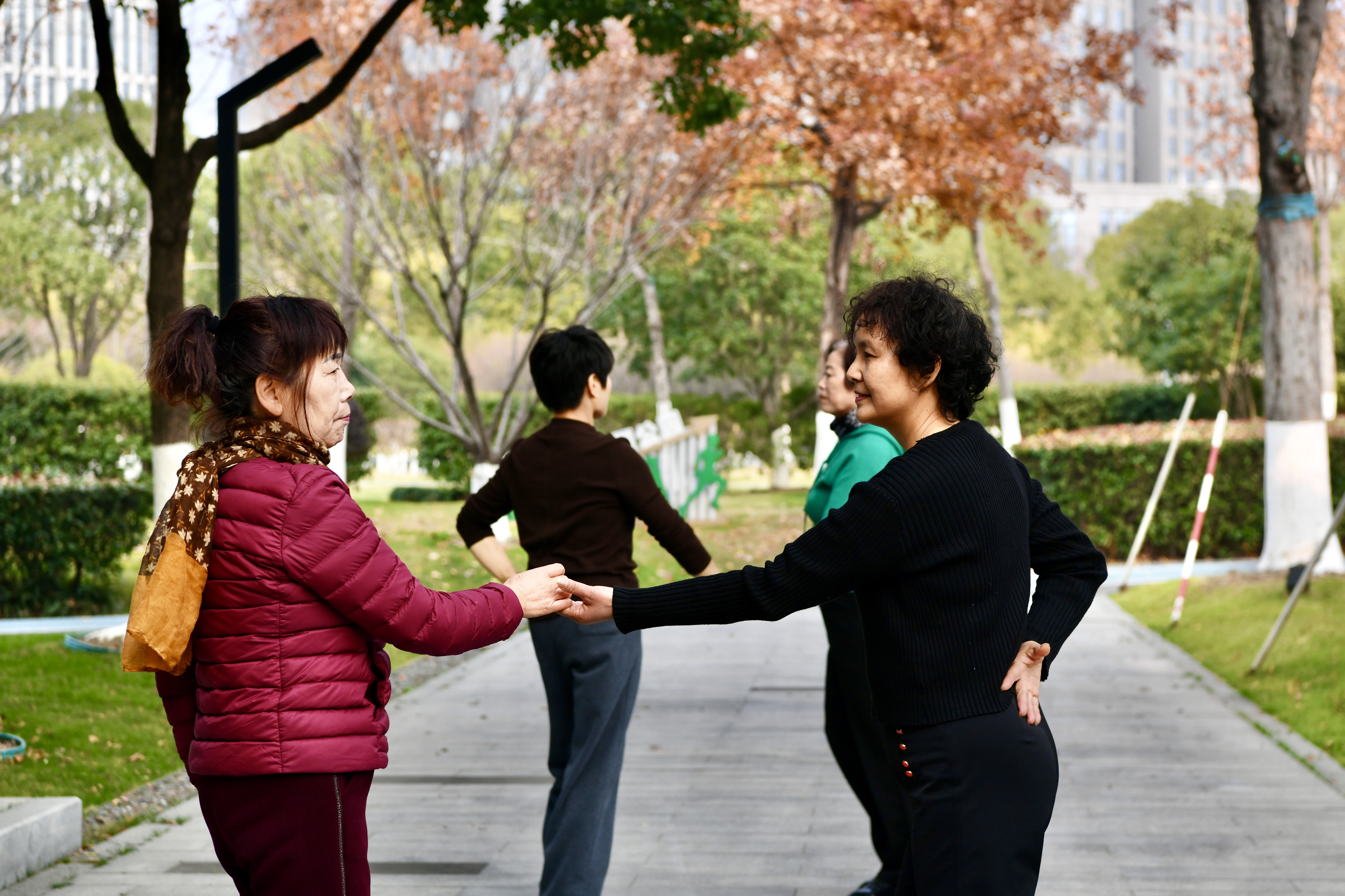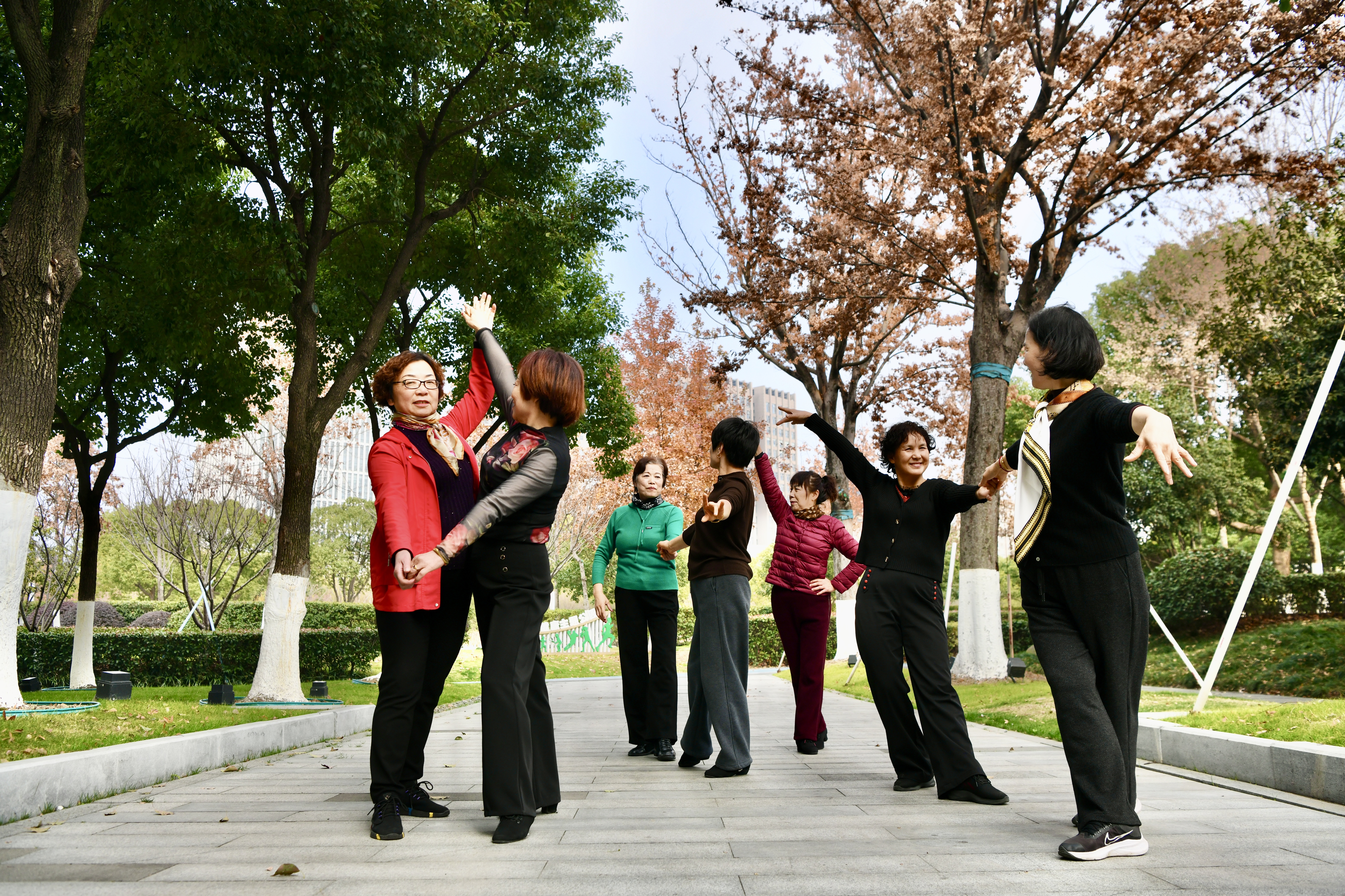 今天(12月30日),嘉兴市秀洲区秀清公园内,一群阿姨两两搭档,正翩翩起舞。据跳舞的周阿姨介绍,她们跳的是近期在老年朋友中颇受欢迎的“ 16套水兵舞”。秀清公园环境好,配套设施齐全,因此她特意约上姐妹们一起来这里锻炼。