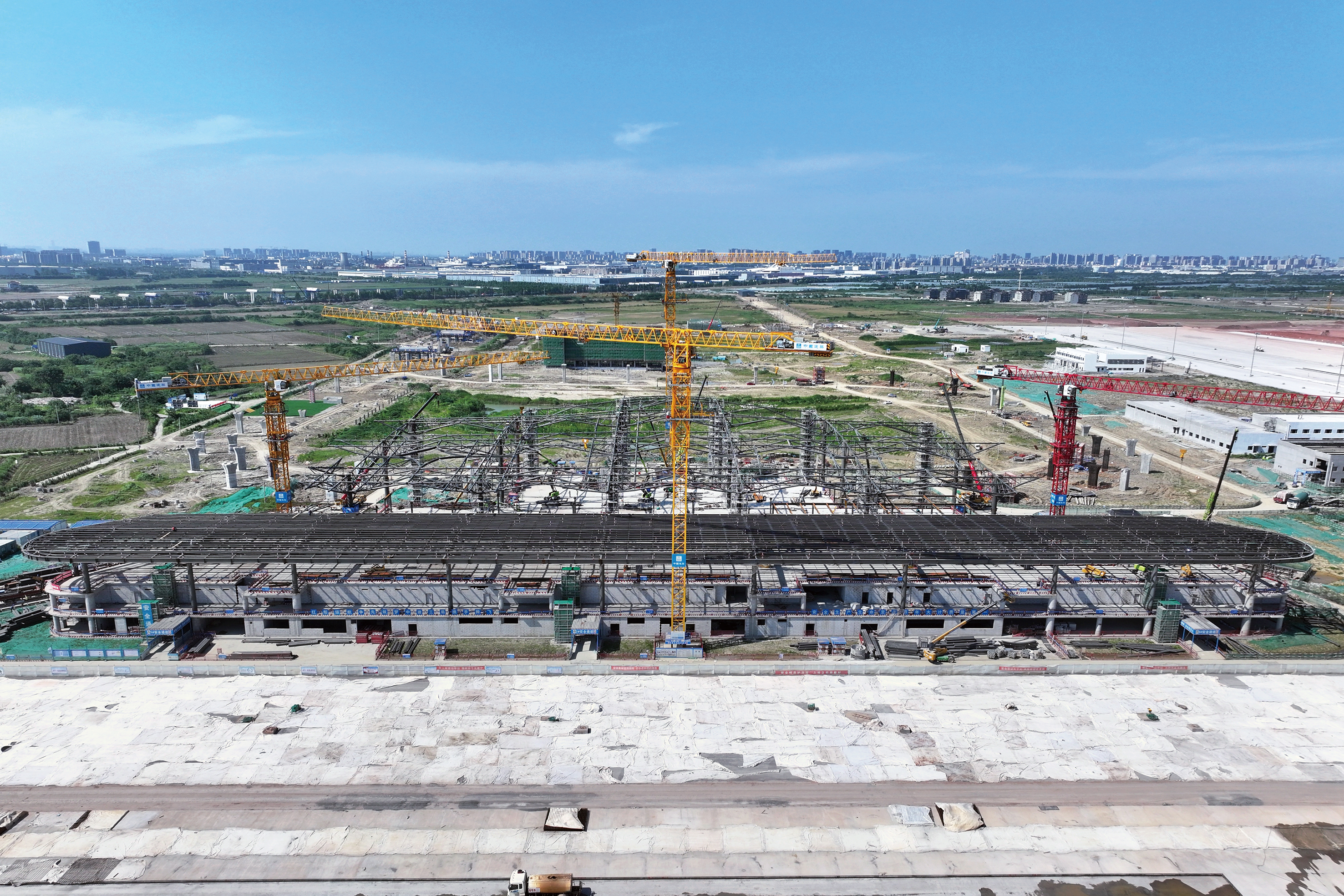 2024年10月9日,从空中俯瞰初现雏形的嘉兴南湖机场航站楼。
