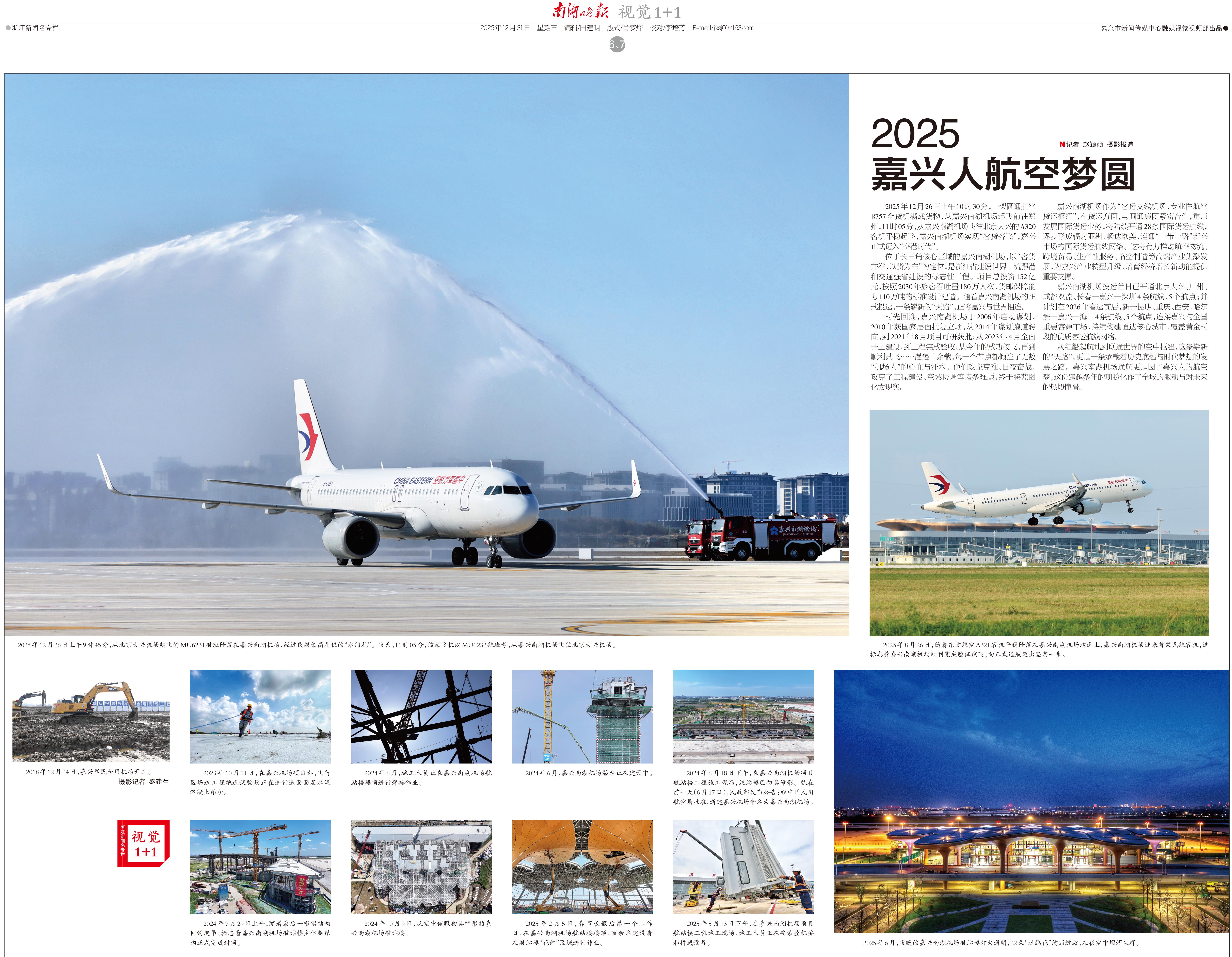 时光回溯,嘉兴南湖机场于2006年启动谋划,2010年获国家层面批复立项,从2014年谋划跑道转向,到2021年8月项目可研获批;从2023年4月全面开工建设,到工程完成验收;从今年的成功校飞,再到顺利试飞……漫漫十余载,每一个节点都倾注了无数“机场人”的心血与汗水。他们攻坚克难、日夜奋战,攻克了工程建设、空域协调等诸多难题,终于将蓝图化为现实。