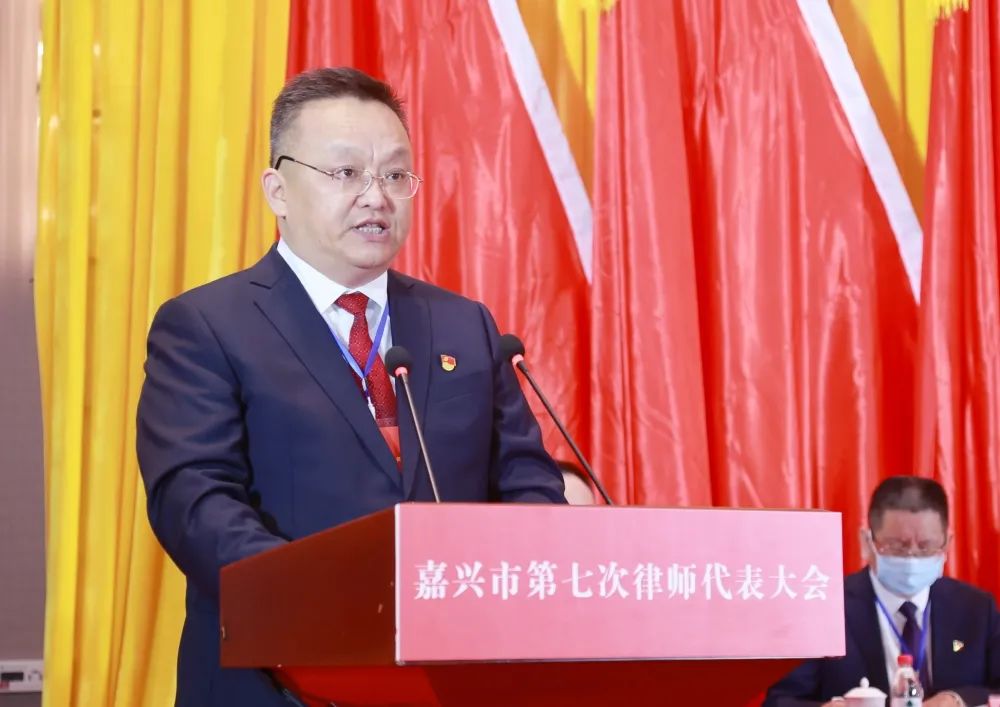 朱苗指出,近年来,嘉兴律师行业在习近平新时代中国特色社会主义思想指引下,得到了长足进步和跨越发展。全市广大律师积极担当作为,全力服务党委政府中心工作,积极参与疫情防控和经济稳进提质攻坚行动,助力公益法律服务,践行“人民律师为人民”的执业理念,充分展示了新时代嘉兴律师的良好形象和凝聚力。他强调,全市律师行业要坚持正确政治方向,强化党对律师工作的全面领导,充分发挥律师行业党组织的战斗堡垒作用和党员律师先锋模范作用;要坚守执业为民取向,促进律师职能作用的有效发挥,在我市奋进“两个率先”中奋发有为,为高质量发展、防范化解风险、创新社会治理、促进社会稳定作出新的更大贡献;要坚定行业发展导向,夯实律师事业前进的良好基础,大力支持律师工作,解决好律师在执业、服务、发展中遇到的困难和问题,积极改善律师执业环境,推动律师事业不断取得新成效、新发展。