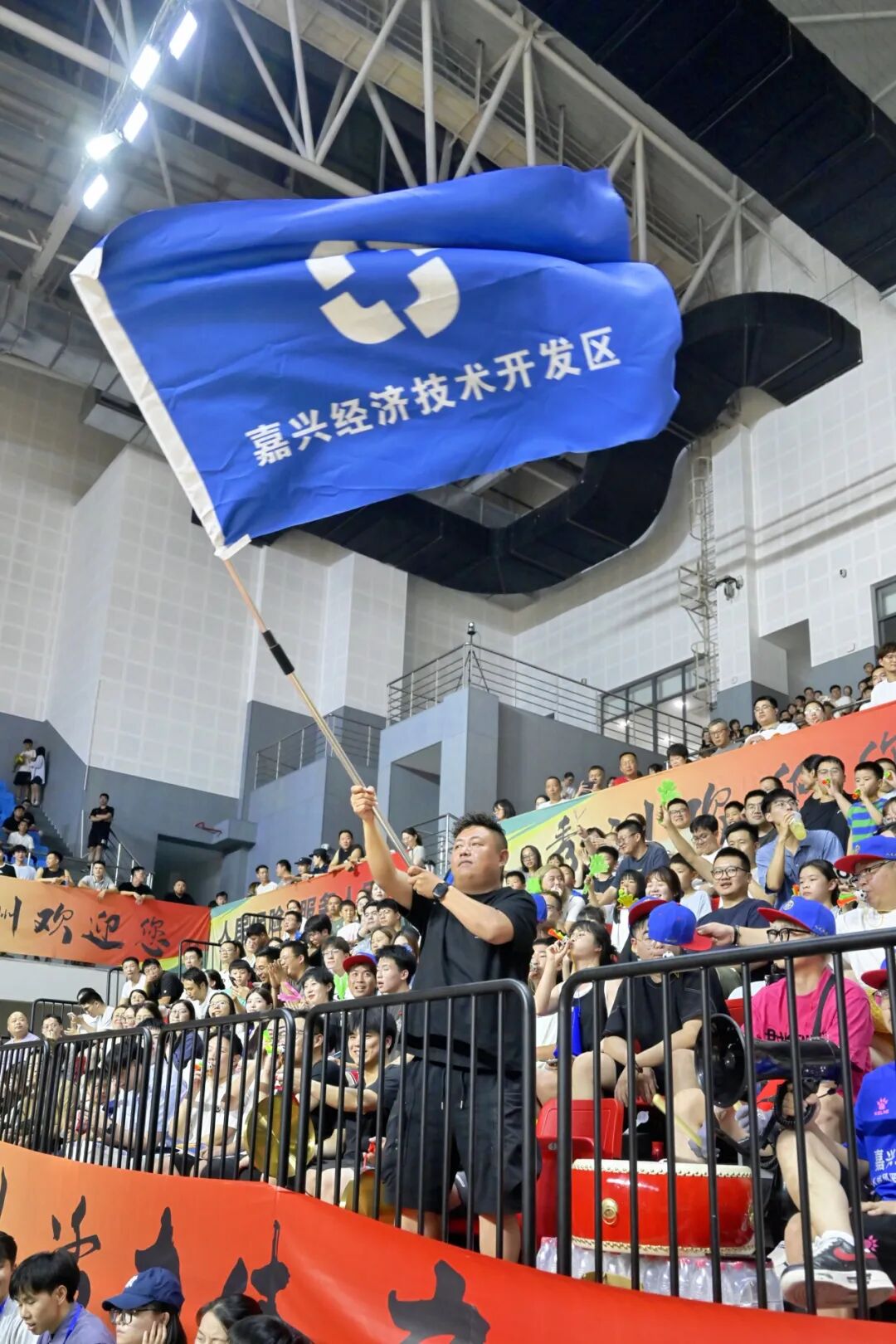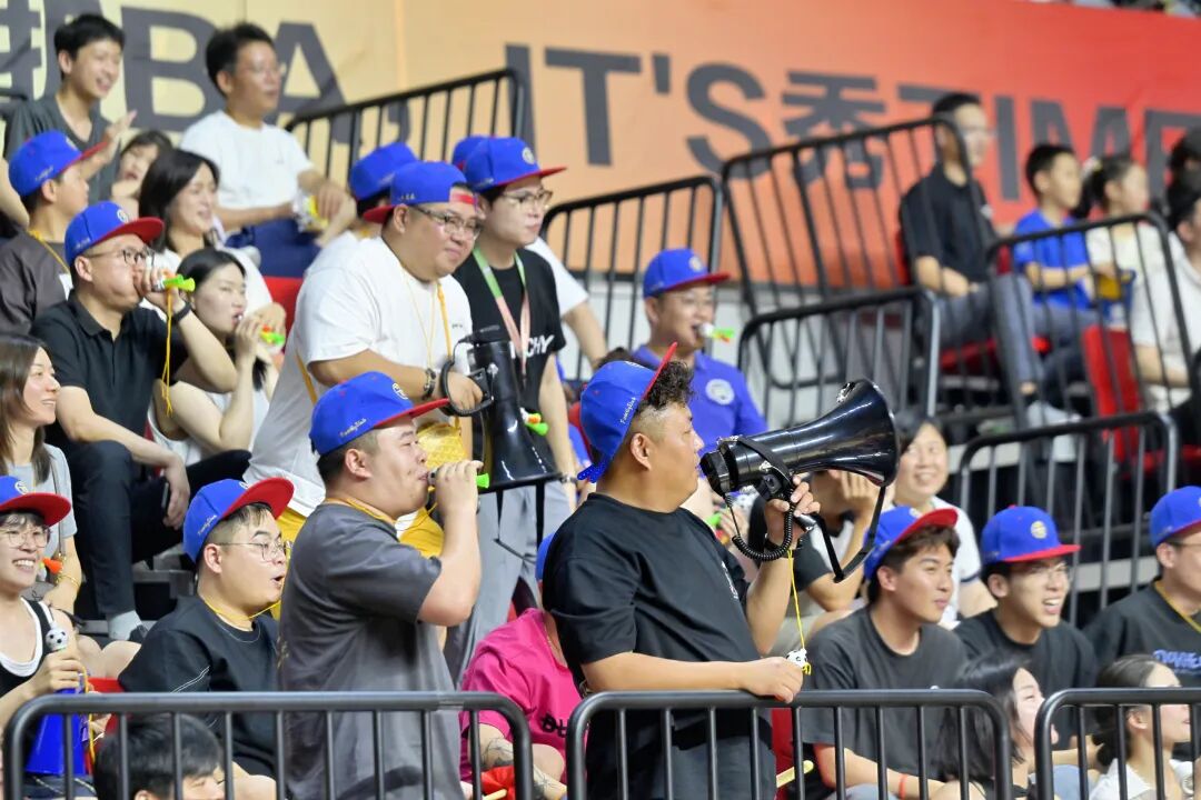其中,一名手持大喇叭、烫着黄卷发的大哥最为吸睛,是今晚为经开队加油声浪中的最强音。“我是大军哥,来自嘉兴经开区嘉北街道,今天为我们的小伙子们加油,大家打得都很好,经开必胜!”这位“大军哥”平时在抖音账号上会分享一些音乐演奏的内容。“家门口这样接地气的比赛,我加油再卖力也不为过,何况队伍这么给力!”