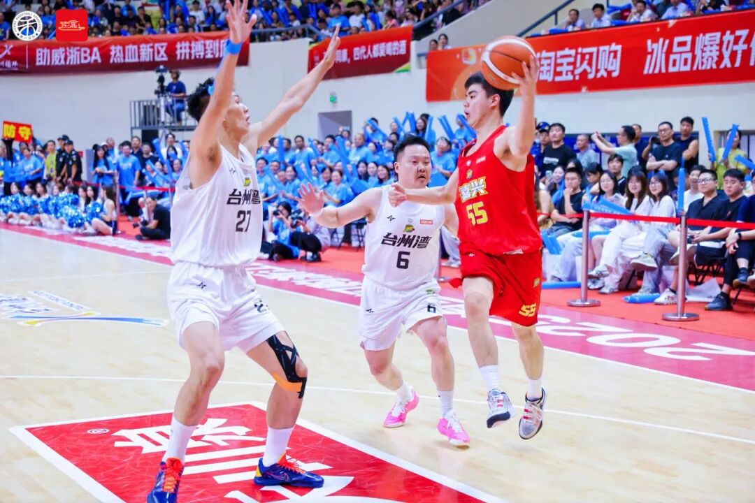 嘉兴队也毫不示弱,8号陆斌鑫妙传给55号黄懿凡,两人配合行云流水,默契十足。5号陈晓峰单打防守球员,凭借扎实技术连得4分。比赛悬念迭起。