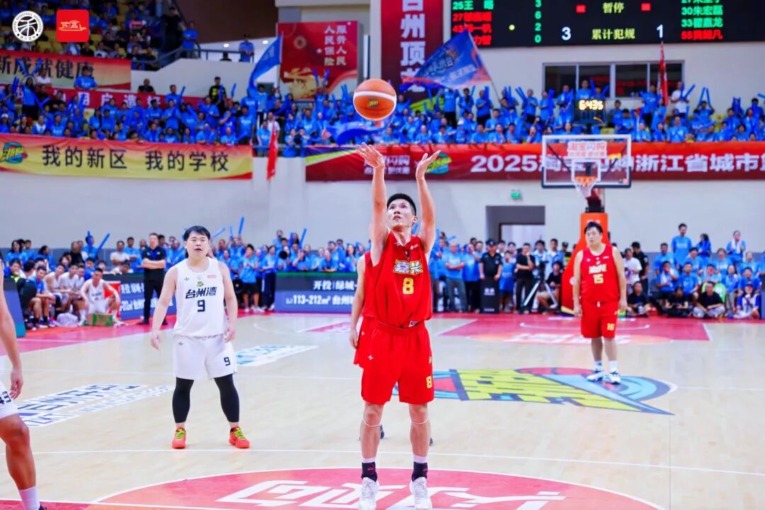 比赛开场,台州湾新区队获得球权。几番激烈争夺,台州湾新区队21号叶建伟抓住机会,一记漂亮的补篮,率先为台州湾新区队斩获2分,点燃现场气氛。