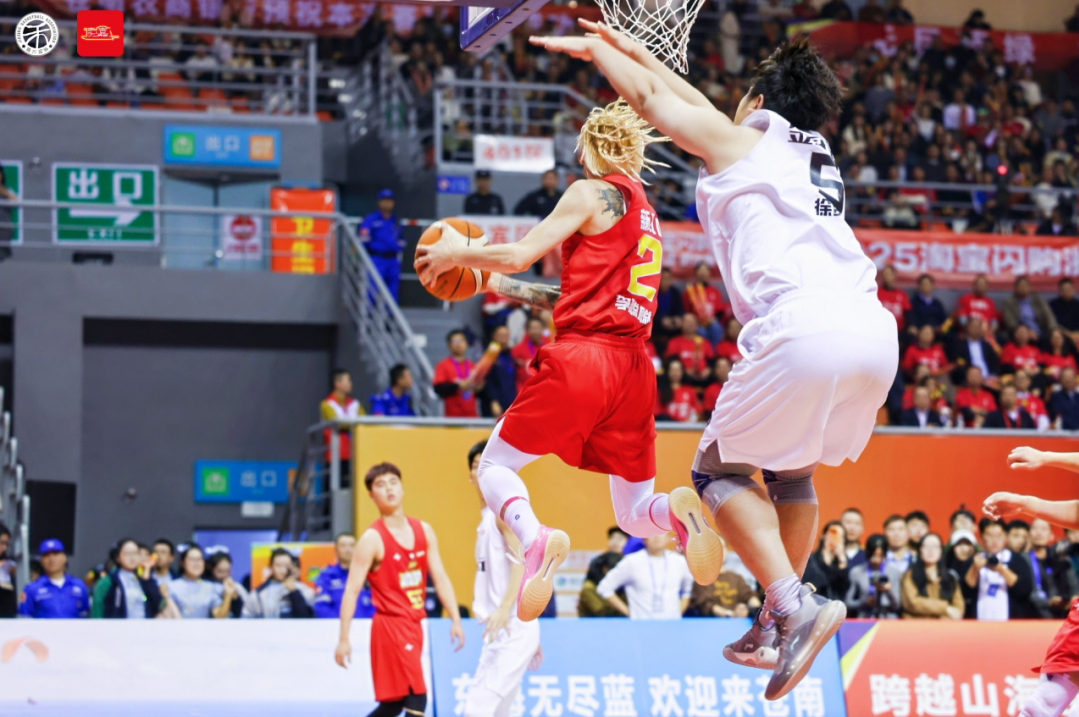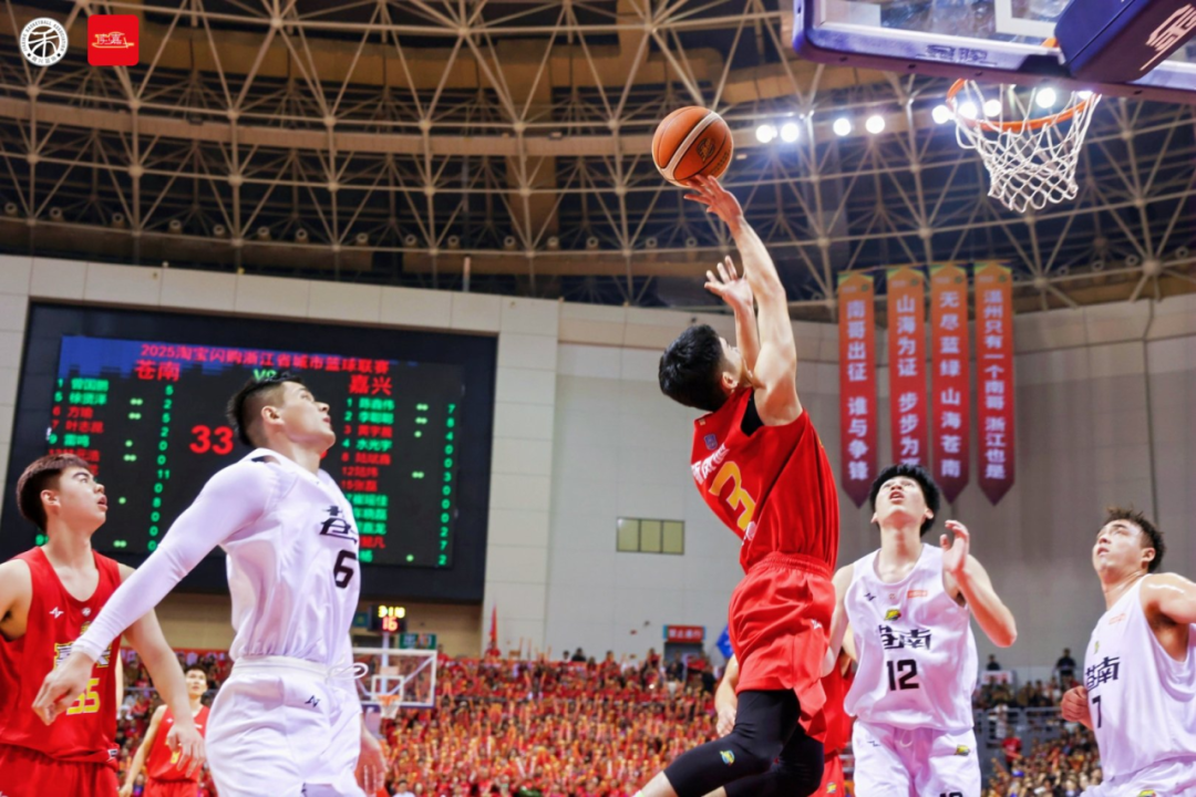 下半场较量展开,双方的防守强度较上半场只增不减,对抗陷入白热化。苍南队率先打破僵局拿下两分后,嘉兴队李聪聪随即献上高光时刻,一记舒展流畅的反向拉杆上篮惊艳全场。
